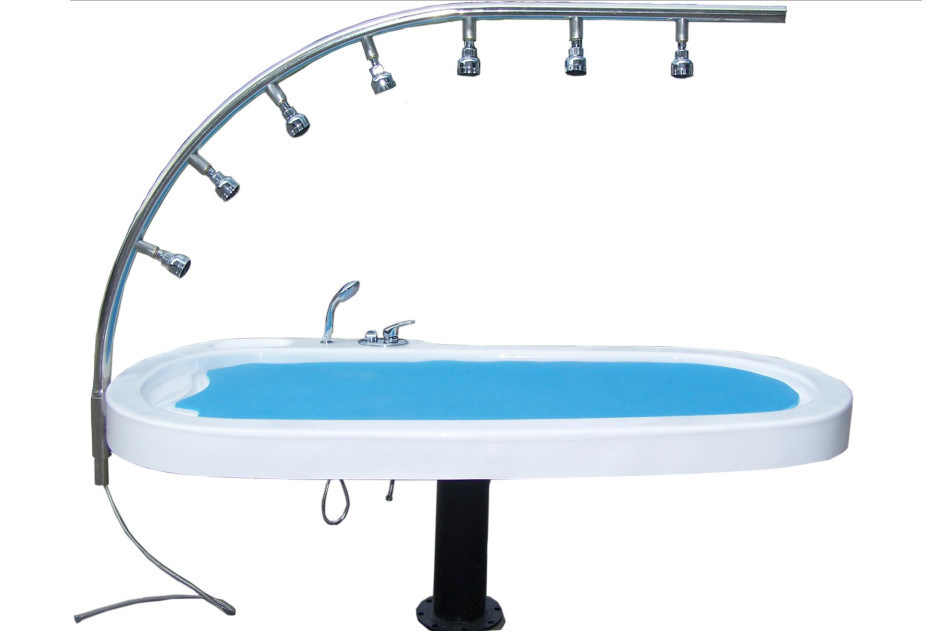 O Sistema Integrado de Chuveiro Vichy combina a barra de chuva, todos os controles e a maca de tratamento úmido em uma unidade elegante. Recursos personalizados incluem maca de acrílico de uma peça com orifício facial moldado e almofada úmida ajustada, além de controles de fácil acesso e tigela de mistura moldada para o terapeuta. Inclui elevador hidráulico com pedal